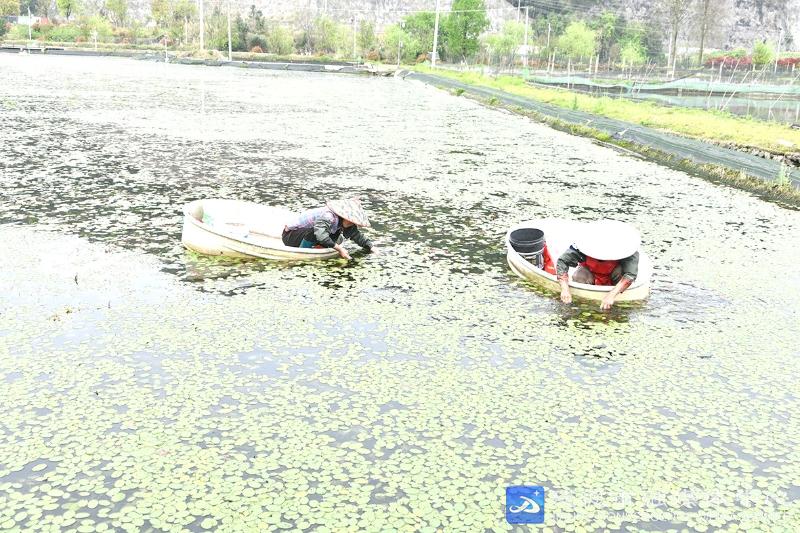 近年來,航頭鎮(zhèn)以黨建聯(lián)建為紐帶,圍繞轄區(qū)特色農(nóng)業(yè)產(chǎn)業(yè)園建設(shè),發(fā)揮新鄉(xiāng)賢、鄉(xiāng)土人才和農(nóng)創(chuàng)客的作用,在烏龍村建設(shè)占地1900平方米的西湖莼菜產(chǎn)業(yè)園,引導新鄉(xiāng)賢爭當農(nóng)業(yè)致富帶頭人,打造西湖莼菜共富工坊,由專業(yè)技術(shù)人才為周邊村民開展崗前技能培訓,提供就業(yè)崗位20余個,帶動周邊村民走上共富之路。圖為村民正在烏龍村西湖莼菜共富工坊種植基地采摘莼菜。