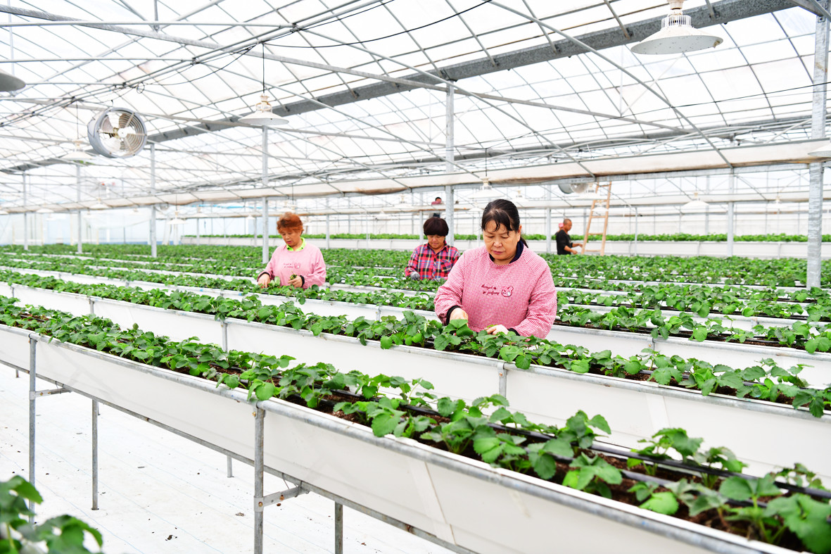 10月16日,在建德市山里紅家庭農(nóng)場(chǎng)種植基地,管護(hù)人員正在一排排平架立體栽培種植槽前管理草莓秧苗。據(jù)該農(nóng)場(chǎng)負(fù)責(zé)人介紹,今年農(nóng)場(chǎng)在2畝鋼架大棚內(nèi)立體栽培了白露、紅頰、建德紅、越雪妃等十多個(gè)草莓品種,通過智能溫控栽培管護(hù),可有效提高鮮果品質(zhì),而立體栽培的草莓也更方便游客采摘,實(shí)現(xiàn)增產(chǎn)增收。