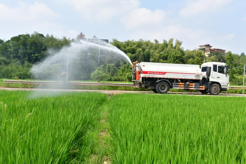 8月24日,航頭鎮(zhèn)環(huán)衛(wèi)保潔工人利用灑水車,在玨塘村田間,幫助農(nóng)戶水稻進(jìn)行抗旱澆灌。