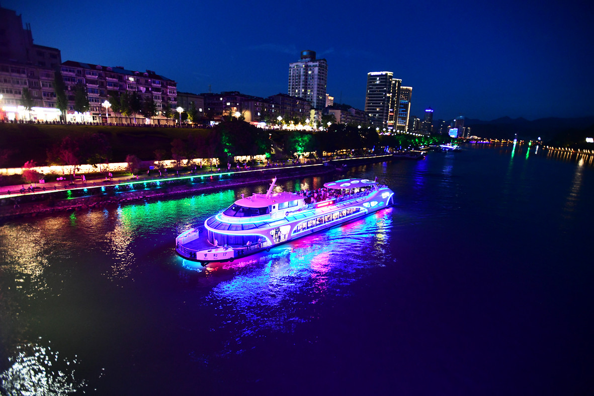 每逢夏季,夜幕降臨后,許多市民游客會(huì)選擇乘坐龍舟、快艇或游輪,在新安江上觀賞夜景,休閑納涼、避暑度夏。