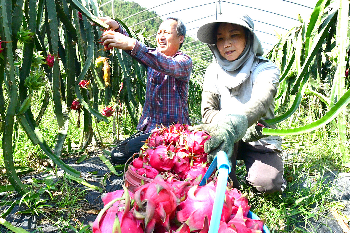 近日,楊村橋鎮(zhèn)盛佳家庭農(nóng)場的火龍果熟了,農(nóng)場主陸秋生與妻子每天都在田間采收成熟的火龍果,經(jīng)過整理包裝后運往市場銷售。該家庭農(nóng)場成立于2019年,陸秋生夫婦倆流轉(zhuǎn)了十多畝土地,建起了鋼架大棚,用于種植火龍果、藍莓、八月瓜等特色水果,在家門口實現(xiàn)了創(chuàng)業(yè)增收。