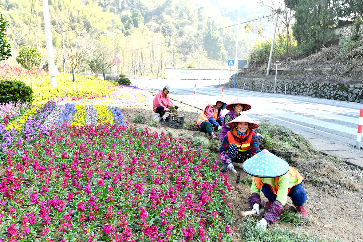 今年以來,我市對重點交通縣道大中修工程部分路段的亮燈、路面、斜坡及綠地等項目進行全面提升改造,確保道路暢通、景致更美。圖為工人們在白章線洋溪大橋段沿線綠地種植花卉,提升道路環(huán)境。