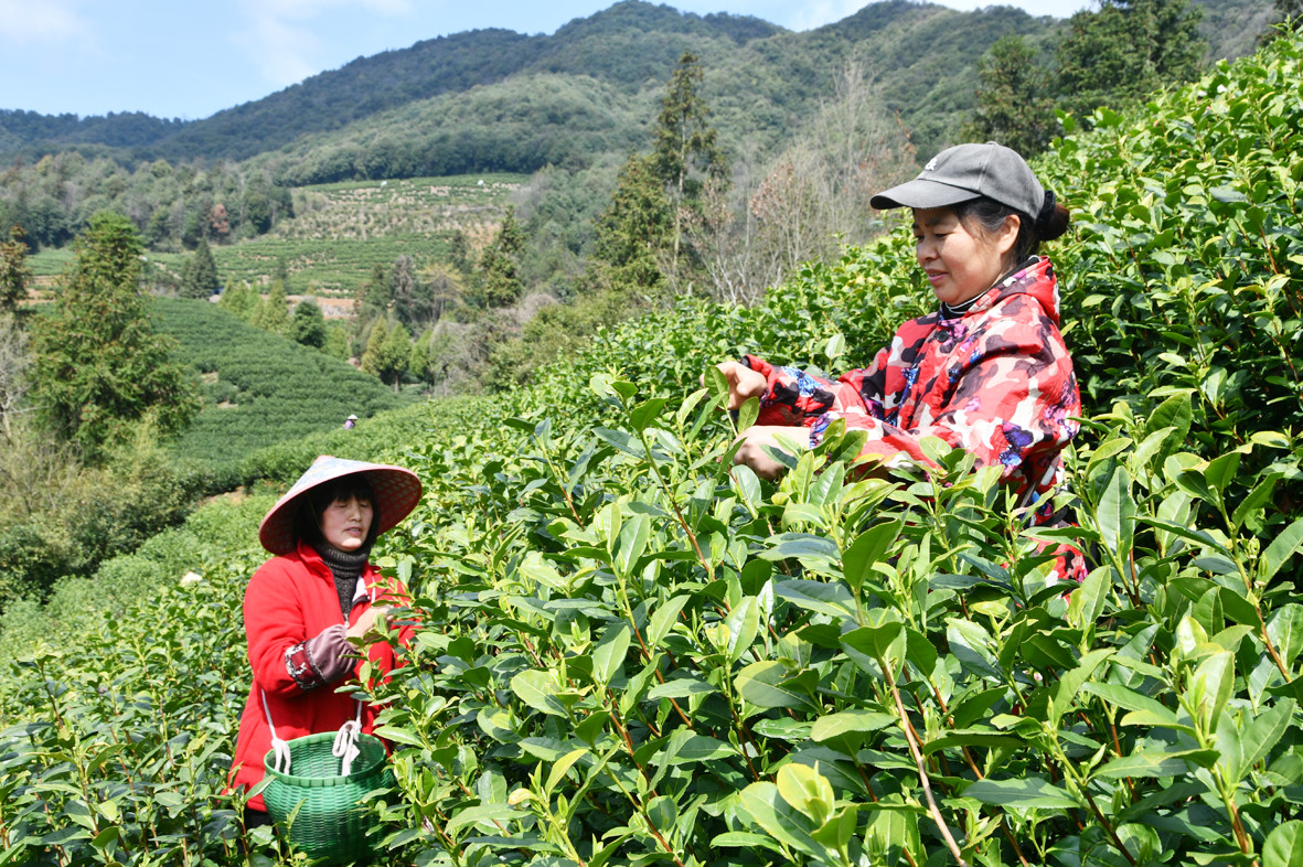 3月19日,在位于壽昌鎮(zhèn)西華村的建德良盈家庭農(nóng)場茶葉種植基地,茶農(nóng)們正在茶山上采摘烏牛早龍井茶嫩芽,目前可采面積達200多畝。隨著氣溫回暖,我市各地明前春茶陸續(xù)開采,茶農(nóng)忙著采摘、炒制春茶,供應市場。