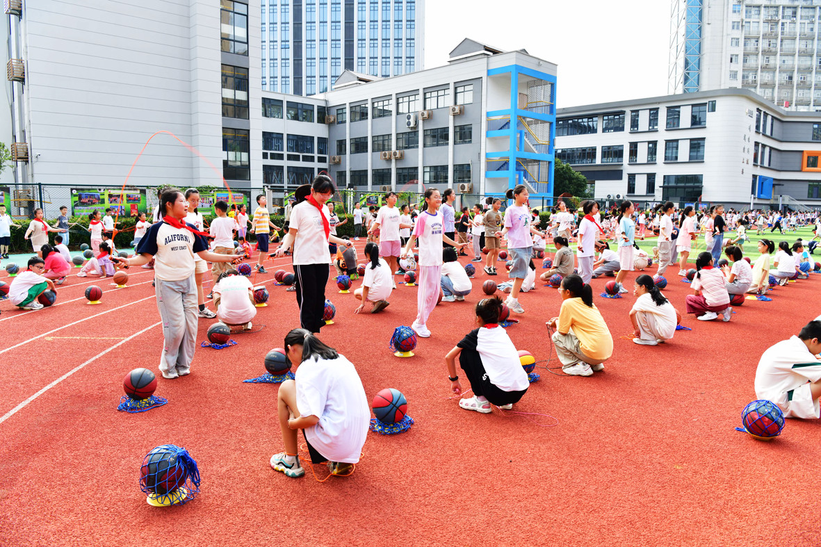 新學(xué)期以來,明珠小學(xué)不斷創(chuàng)新大課間活動(dòng)內(nèi)容,將傳統(tǒng)文化、音樂與體育運(yùn)動(dòng)相互融合,引入兒童趣味游戲以及籃球、足球等特色體育項(xiàng)目,讓學(xué)生從中感受運(yùn)動(dòng)的快樂,促進(jìn)身心素質(zhì)全面提高。