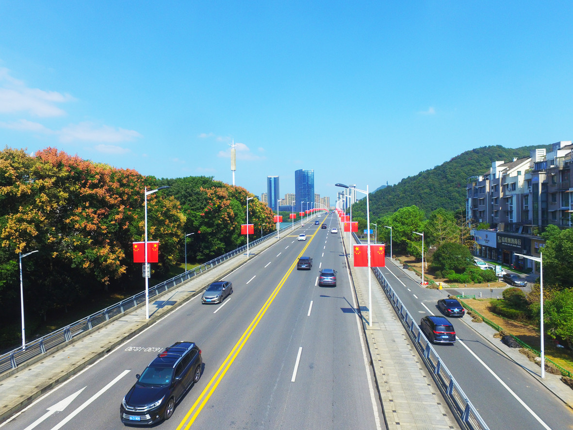國(guó)慶將至,我市城鄉(xiāng)各地紛紛懸掛五星紅旗,處處飄揚(yáng)著欣欣向榮的“中國(guó)紅”,營(yíng)造了喜慶祥和的節(jié)日氛圍。圖為洋安大橋兩側(cè)迎風(fēng)飄揚(yáng)的五星紅旗格外引人注目。