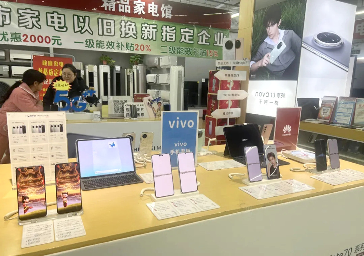 “哪些手機(jī)可以國補(bǔ)?”“華為Mate70國補(bǔ)后的價格是多少?”日前,記者在建德各大商超、手機(jī)店等看到,有關(guān)國補(bǔ)政策的各類宣傳標(biāo)語隨處可見,咨詢、下單的市民絡(luò)繹不絕。