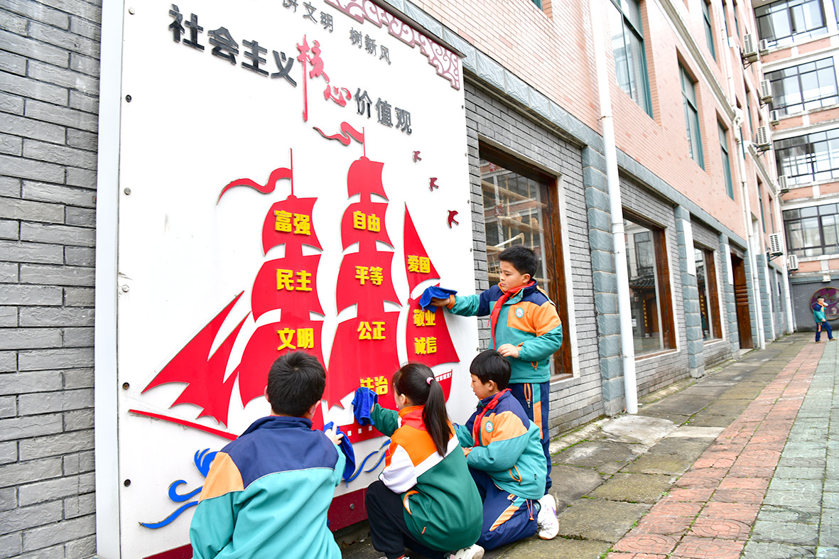隨著“3·5”學(xué)雷鋒紀(jì)念日到來,我市各中小學(xué)校、幼兒園積極倡導(dǎo)學(xué)生做好事、見行動,從自身做起、從身邊小事做起,以實(shí)際行動詮釋愛心,傳承弘揚(yáng)雷鋒精神。圖為昨日航頭中心小學(xué)組織開展學(xué)雷鋒樹新風(fēng)活動,學(xué)生們正在清洗校內(nèi)公共設(shè)施。