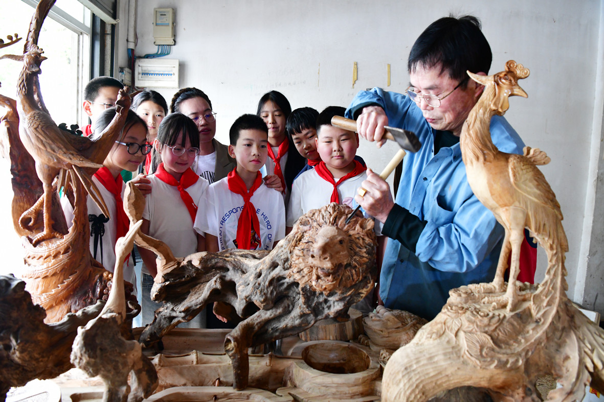 4月24日,楊村橋中心小學(xué)開展“尋找身邊工匠 傳承根雕技藝”社會實踐勞動教育活動。學(xué)生們在老師的帶領(lǐng)下走進“百騎根雕”工坊,聆聽從事根雕事業(yè)17年的吳澤生師傅講解根雕作品的構(gòu)思、加工及處理等技藝,并體驗了傳統(tǒng)手工根雕創(chuàng)作,加深對傳統(tǒng)技藝的認識,進一步培養(yǎng)熱愛勞動、熱愛家鄉(xiāng)的情懷。