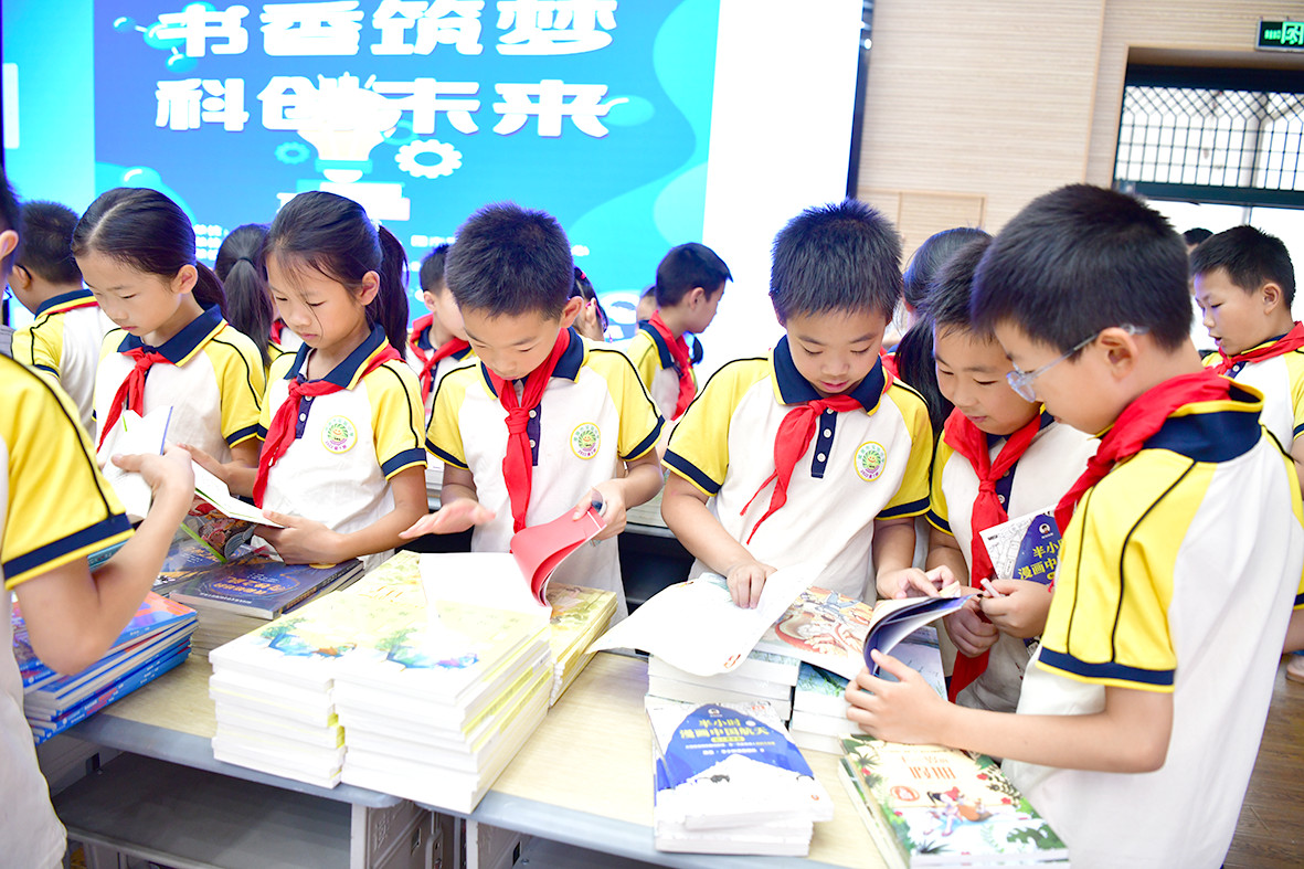 近日,由市委宣傳部、市教育局、團(tuán)市委、市融媒體中心聯(lián)合主辦的“書香筑夢·科創(chuàng)未來”建德市第二十屆中小學(xué)生“閱讀伴我成長”讀好書活動在全市各中小學(xué)校深入展開,旨在向中小學(xué)生推薦優(yōu)秀圖書,讓濃濃的書香伴隨學(xué)生們度過一個健康、快樂、有意義的假期。圖為市新華書店工作人員將“流動圖書室”送到市實驗小學(xué)校園內(nèi),吸引了眾多學(xué)生前來挑選。
