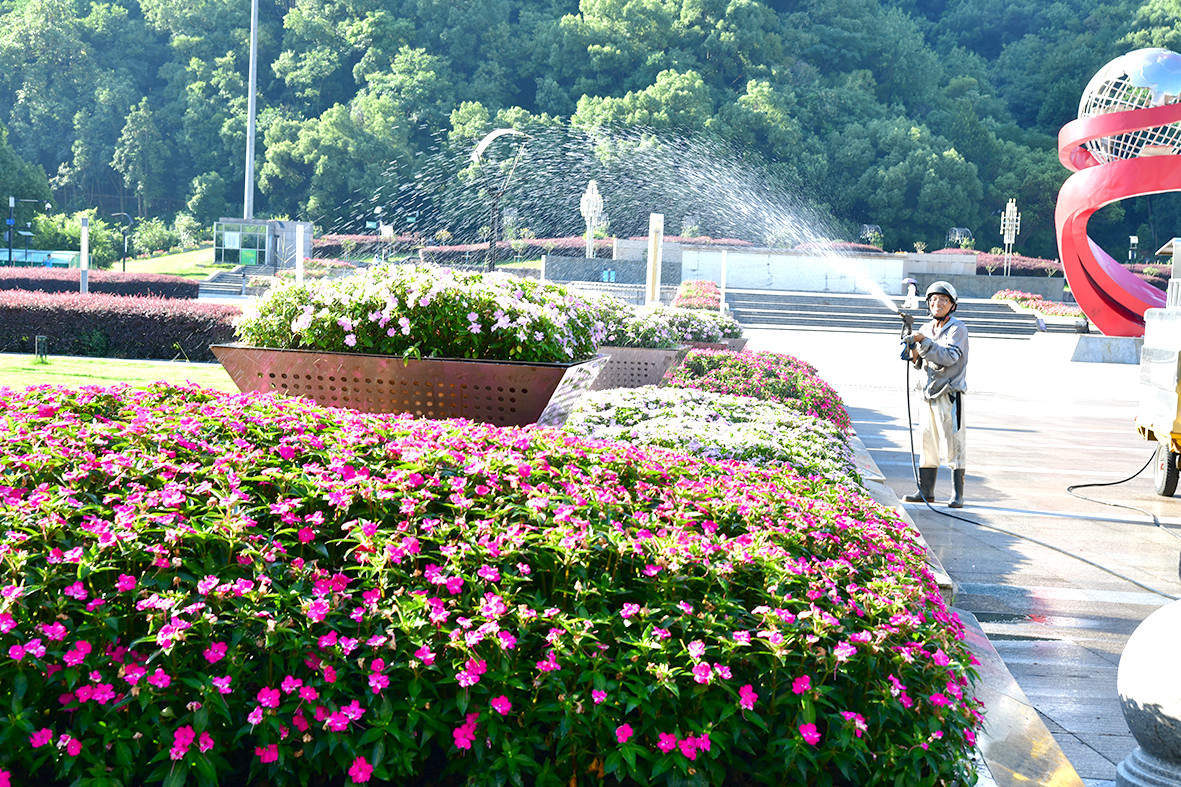 持續(xù)的高溫晴熱天氣,給新安江城區(qū)公園、廣場(chǎng)、道路等處的綠化植被帶來嚴(yán)峻考驗(yàn)。連日來,工人們利用早晚時(shí)間進(jìn)行澆水保濕,確保綠化花草安然度夏。