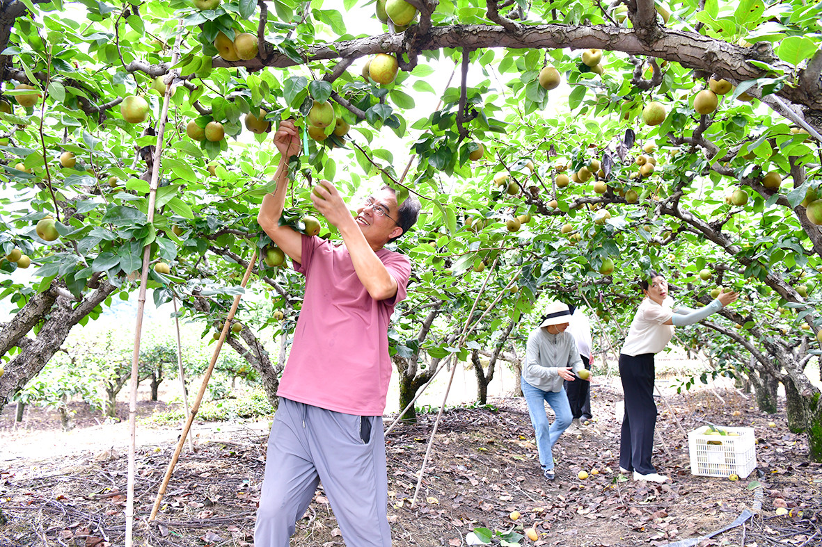 近年來(lái),該村打造了約200畝的“幸福果園”,通過(guò)引進(jìn)新技術(shù)、改良新品種等措施,提高鮮果品質(zhì),同時(shí)還積極拓展線上線下銷售渠道,實(shí)現(xiàn)增產(chǎn)增收。