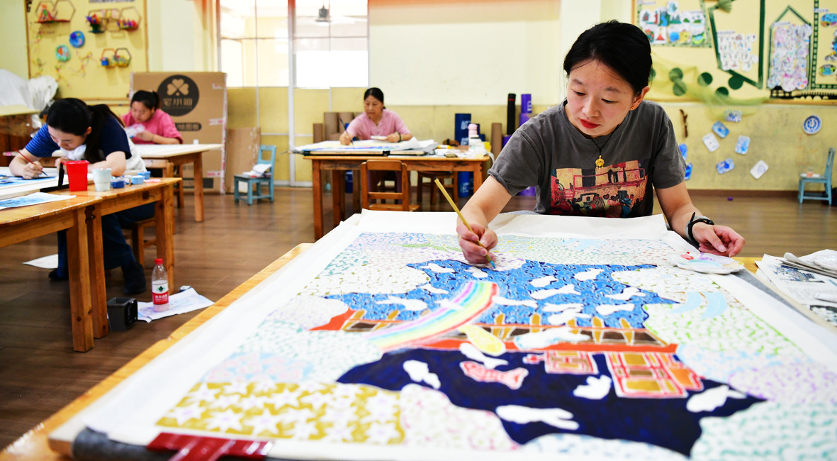 日前,在市文化館舉辦的第十七屆“沃土生花 筆繪鄉(xiāng)韻”農(nóng)民畫主題創(chuàng)作活動中,專業(yè)老師引導學員們通過現(xiàn)代民間繪畫語言,描繪建德秀美山川,謳歌時代發(fā)展,展現(xiàn)人民生活新風貌。圖為農(nóng)民畫愛好者在建德農(nóng)民畫培訓基地進行創(chuàng)作。