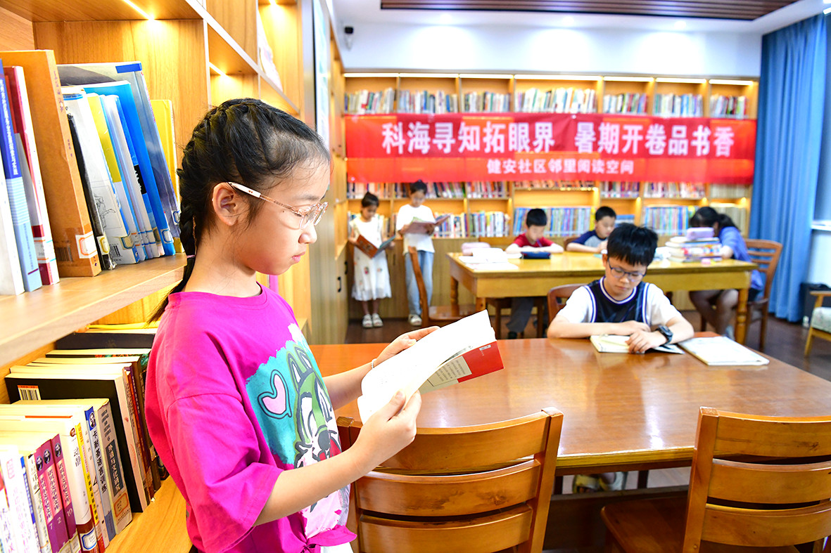 8月14日,記者在新安江街道健安社區(qū)鄰里閱讀空間看到,孩子們沉浸在靜謐的閱讀氛圍中。暑假里,該社區(qū)通過開展“科海尋知拓眼界 暑期開卷品書香”主題少兒讀書節(jié)活動,讓轄區(qū)內(nèi)的孩子們在清涼、舒適的圖書室里開拓視野、品味書香、增長知識,度過一個充實而愉快的假期。