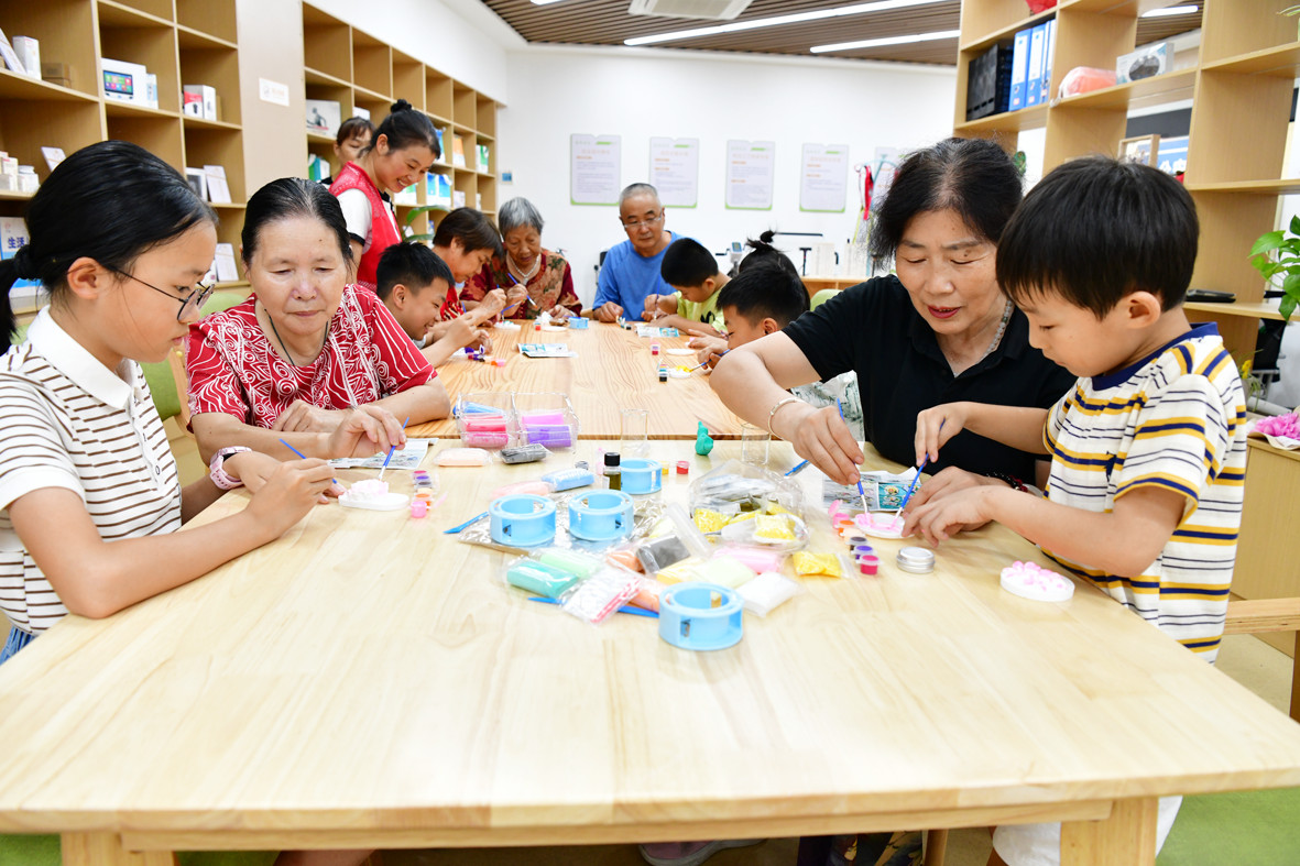 自2024年8月開始,新安江街道府西社區(qū)每周四都會組織轄區(qū)內(nèi)的“一老一小”群體,開展手工編織、繪畫、做游戲、剪紙等活動,不僅給他們的生活增添了樂趣,也及時解決了老人與孩子在生活上遇到的一些小困難。圖為老人與孩子們正在社區(qū)志愿者的指導(dǎo)下,用畫筆給石膏娃娃上色。