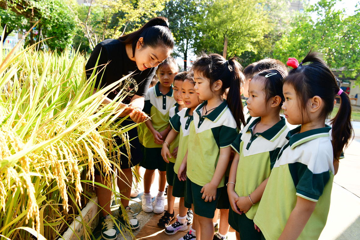 日前,在壽昌幼兒園農(nóng)耕種植園,孩子們在老師指導(dǎo)下,了解水稻生長特點。近年來,該園利用校園空閑地塊,開辟出農(nóng)耕種植園,讓孩子們體驗和觀察農(nóng)作物種植、培育及收獲全過程,知曉更多的農(nóng)事知識。