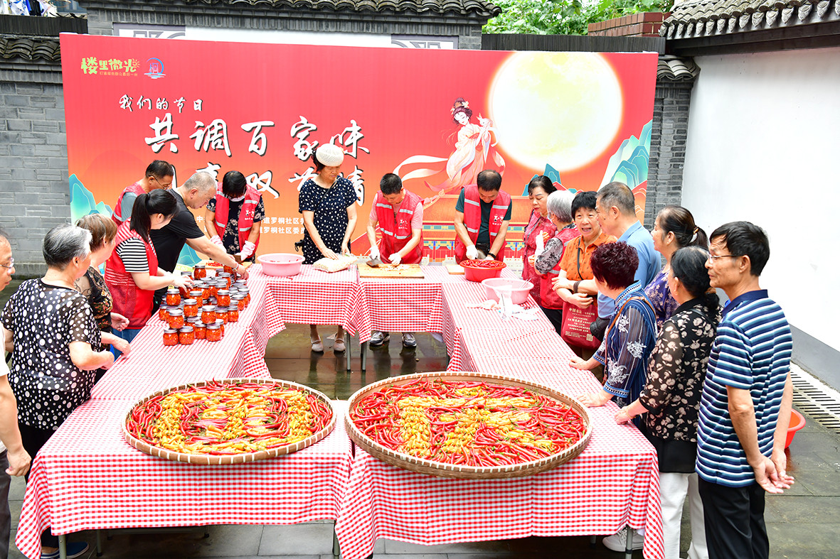 中秋逢國慶,家國情更濃。9月24日,新安江街道羅桐社區(qū)開展以“共調百家味 同享雙節(jié)情”為主題的辣椒醬制作迎“雙節(jié)”活動,社區(qū)居民們用不同顏色的辣椒在竹匾里擺出“國慶”兩字的造型,在寓意日子紅紅火火的辣椒醬制作過程中增進鄰里感情,在凝聚社區(qū)溫暖與團圓的喜慶氛圍中共同祝愿祖國繁榮昌盛、國泰民安。