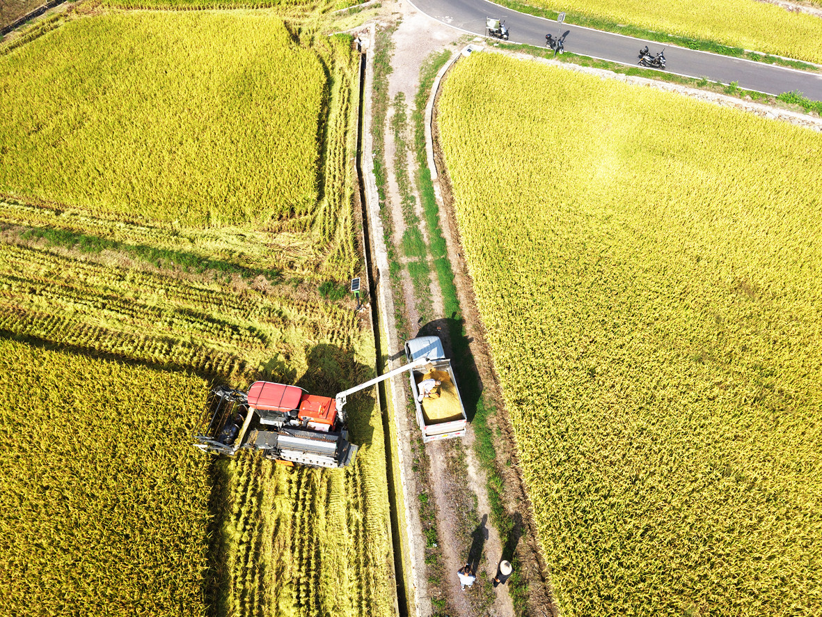 眼下,我市8萬畝單季晚稻喜獲豐收,預(yù)計平均畝產(chǎn)約600公斤。圖為杭州山峰農(nóng)業(yè)開發(fā)有限公司組織農(nóng)機手采收壽昌鎮(zhèn)山峰村高田畈自然村的280畝單季晚稻。