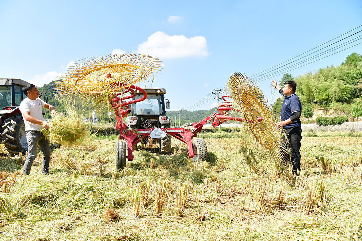 近日,在位于欽堂鄉(xiāng)的杭州心之所向農(nóng)創(chuàng)文旅有限公司里,農(nóng)技員操控著新配置的摟草機(jī)、抓草機(jī)和打捆機(jī),在已經(jīng)完成收割的稻田里高效地將散落的秸稈摟集絞條、編織成毯、壓實(shí)打捆,統(tǒng)一裝運(yùn)離田,回收加工成飼料、肥料、燃料等。據(jù)了解,該公司添置的這批新型農(nóng)機(jī)不僅用于公司承包田,還為全市6個(gè)鎮(zhèn)街的種植戶開展免費(fèi)的秸稈回收利用服務(wù)。