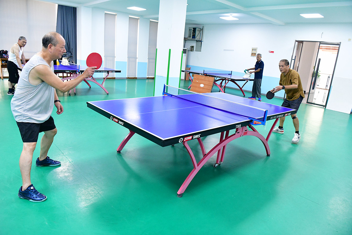 今年3月,市民政局在新安江街道健安社區(qū)建起了“民生綜合體服務(wù)中心”,設(shè)置嬰幼兒成長驛站、老年食堂、乒乓球室、舞蹈室等場所,為“一老一小”在幼兒托管、養(yǎng)生保健、娛樂運動等方面提供民生保障,提高居民幸福感。圖為老年居民在乒乓球室以球會友。