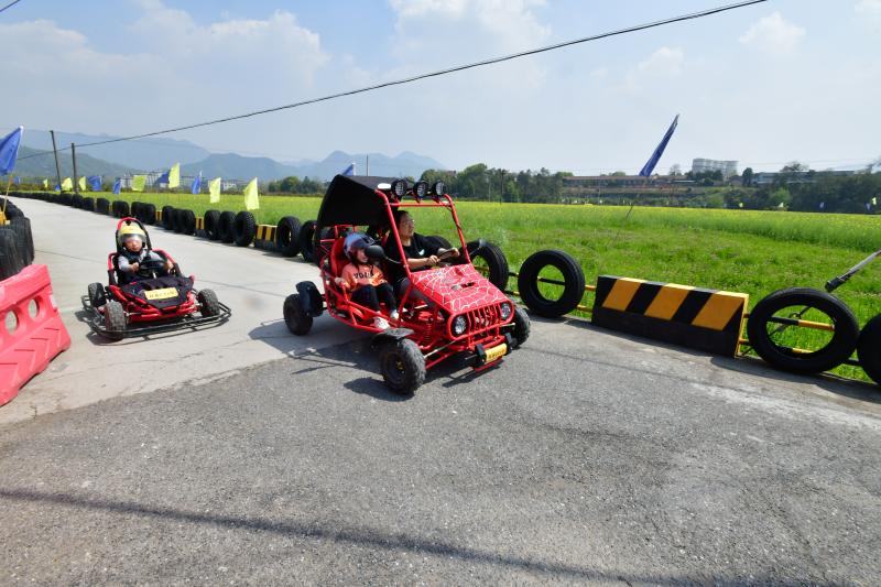 4月3日,游客在壽昌鎮(zhèn)桂花村體驗田園卡丁車休閑旅游項目,每日接待游客百余人次左右 。