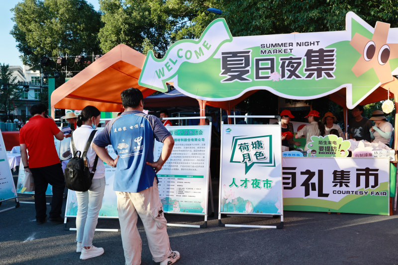 7月4日,第二屆杭金衢荷花節(jié)在大慈巖鎮(zhèn)里葉村開啟,這個荷花飄香的小鎮(zhèn),成為了人們避暑放松的好去處,約上三五好友,聽著音樂,吃著美食,喝著啤酒,十分愜意?;顒蝇F(xiàn)場還舉辦了一場特色的“人才夜市”招聘會。