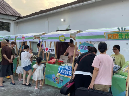 活動現(xiàn)場外圍繞迎亞運(yùn)全民參與及文化惠民下鄉(xiāng)等文化節(jié)活動,配套了文旅市集。市集攤位主要有折扇、農(nóng)創(chuàng)牛玩偶等精品文創(chuàng)品展示,米、油等農(nóng)創(chuàng)品展示,千層糕、壽司等大同特色美食小吃品嘗等。