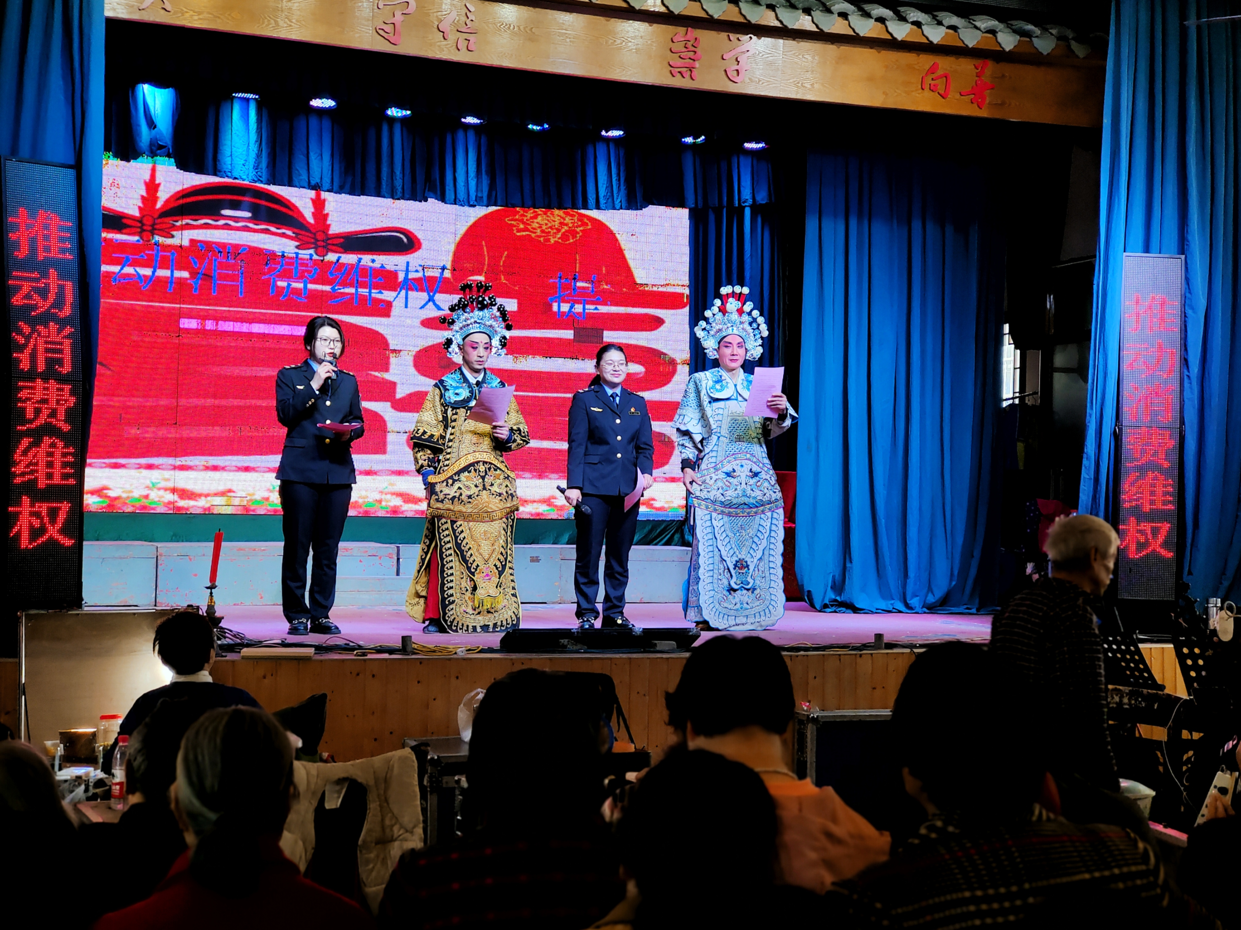 維權(quán)宣傳上戲臺(tái),群眾消費(fèi)得平安?!?·15”消費(fèi)者權(quán)益日到來之際,該所以各村舉辦“送戲下鄉(xiāng)”活動(dòng)為契機(jī),采取文藝演出與反詐宣傳相結(jié)合的方式,深入開展“提振消費(fèi)信心”為主題的消費(fèi)維權(quán)宣講活動(dòng)。同時(shí),執(zhí)法人員撰寫編排消費(fèi)防詐順口溜等節(jié)目,邀請(qǐng)婺劇團(tuán)演員們聯(lián)合演出。用老年人喜聞樂見的方式宣傳消費(fèi)防詐知識(shí),引導(dǎo)老人警惕消費(fèi)陷阱,維護(hù)自身合法權(quán)益。以寓教于樂的形式引導(dǎo)群眾科學(xué)消費(fèi)、理性維權(quán),共建安全放心的消費(fèi)環(huán)境,提振消費(fèi)市場活力。此次活動(dòng)形式走新,內(nèi)容暖心,效果更入人心。