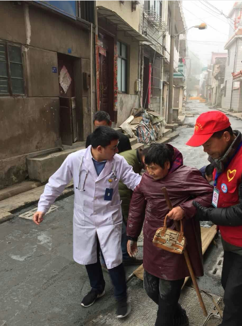 1月23日一大早,梅城鎮(zhèn)總府社區(qū)工作人員急匆匆趕到梅城衛(wèi)生院志愿者工作站,向當(dāng)班志愿者求助,志愿者仔細(xì)詢問(wèn)后得知,社區(qū)有位孤寡老人患有多年下肢殘疾,早上不慎在門前摔倒,希望院方能上門救治。衛(wèi)生院領(lǐng)導(dǎo)得知此事后,馬上派出外科醫(yī)師和當(dāng)班志愿者拿起擔(dān)架就往老人家中跑,由于梅城鎮(zhèn)目前正在小城鎮(zhèn)改造施工階段,擔(dān)架是最快捷方便的運(yùn)輸工具。