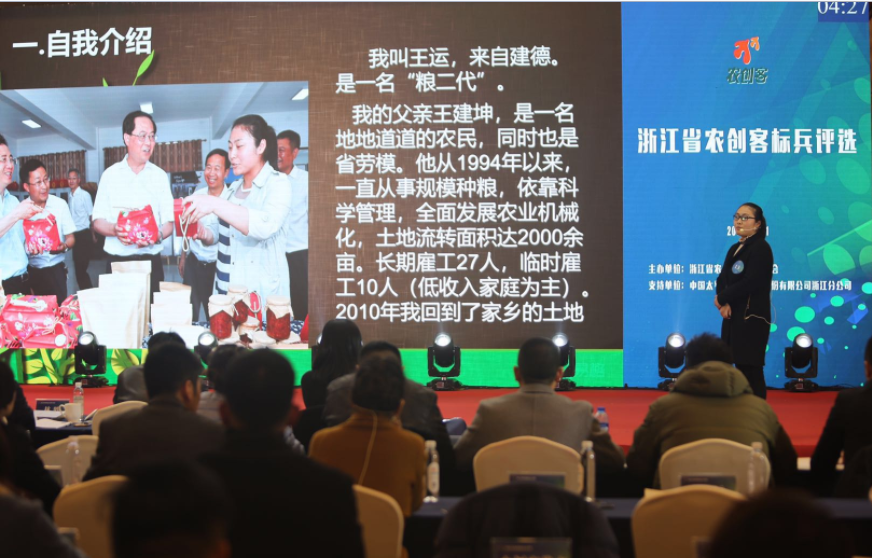 1月21日,由浙江省農創(chuàng)客發(fā)展聯(lián)合會主辦的浙江省農創(chuàng)客標兵評選在杭州召開。經地市推薦、個人自薦、專家初評等程序,從100多個創(chuàng)業(yè)項目中遴選出20個進入終評路演環(huán)節(jié),經過選手路演、評委提問、現(xiàn)場打分等環(huán)節(jié),最終,欽堂鄉(xiāng)王運獲浙江省十佳農創(chuàng)客標兵,為我市唯一。