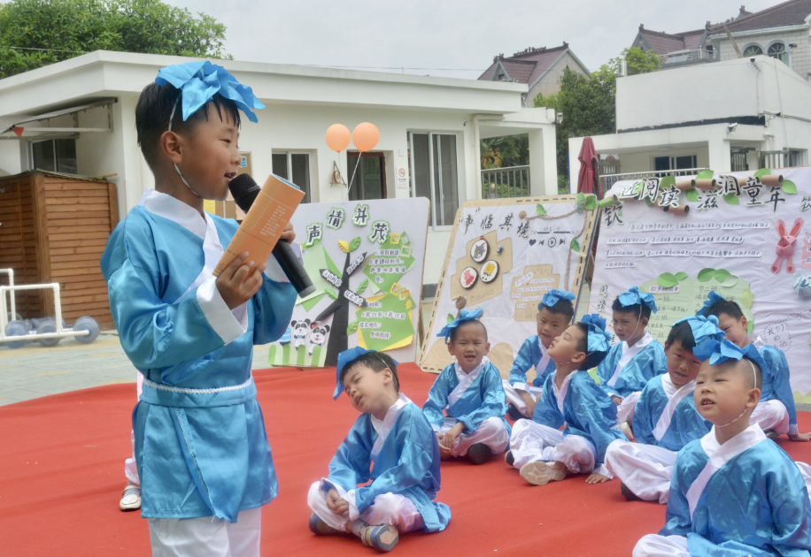 品書香,閱讀,使我們睿智。4 月 23 日,第 24 個世界讀書日來臨之際,欽堂中心幼兒園“欽近閱讀 滋潤童年”第四屆閱讀節(jié)開幕,將開展一系列閱讀主題系列活動,從小培養(yǎng)孩子的閱讀習(xí)慣,讓孩子快樂閱讀,享受閱讀,圖為孩子們在開幕式上用歌聲和舞蹈演繹經(jīng)典。