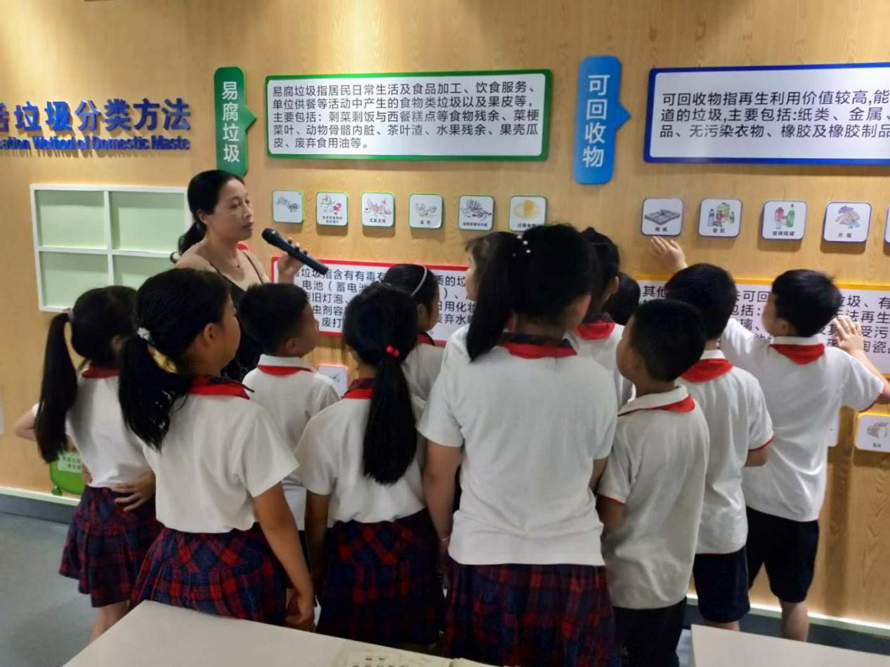 電子教學(xué)區(qū),小朋友們正在進(jìn)行垃圾分類知識(shí)競(jìng)賽并“親自”動(dòng)手進(jìn)行垃圾分類