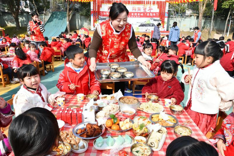 隨著春節(jié)的臨近,1月11日,壽昌幼兒園舉行“知年俗 制美食 品年味”主題的年俗周活動。來自全園350多名孩子在老師的指導(dǎo)下,一起制作湯圓、肉圓、麻糍、春卷、餃子等家鄉(xiāng)過年的傳統(tǒng)美食,共同品味校園里的“年夜飯”。在感受濃濃的年味的同時,倡導(dǎo)孩子們學(xué)習(xí)拜年禮儀,學(xué)說新年吉祥話,不要燃放煙花爆竹、遠(yuǎn)離煙花爆竹,開開心心過一個安全、文明、祥和、健康的新春佳節(jié)。