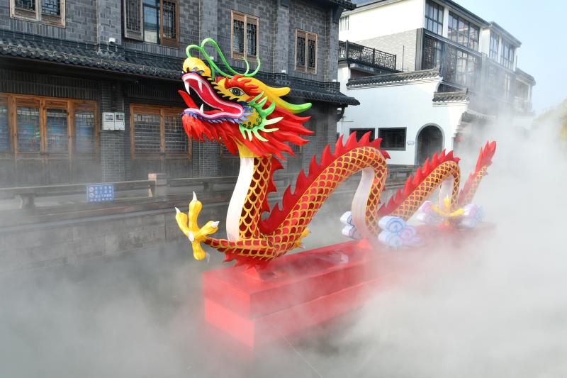 這些天,在壽昌古鎮(zhèn)的西湖水街會通橋兩側,兩條嶄新的龍燈擺設在水面上,楚楚動人,格外靚麗,吸引眾多的游客和市民前來打卡,拍照留念。隨著龍年新春的臨近,該鎮(zhèn)特地在西湖水街設置了巨型龍燈模型,白天水霧升騰,晚上燈光璀璨,流光溢彩,扮靚夜景,不僅給古鎮(zhèn)營造龍年的節(jié)日喜慶氛圍,也給街區(qū)增添一道亮麗的網紅打卡地。