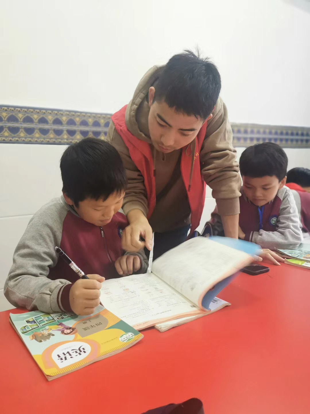 每天放學后,三河小學“紅馬甲”老師,都會帶領一群留守兒童來到位于三河村委會的“四點鐘學?!?,這是三河小學黨支部為了破解留守兒童放學后失管難題的新舉措。