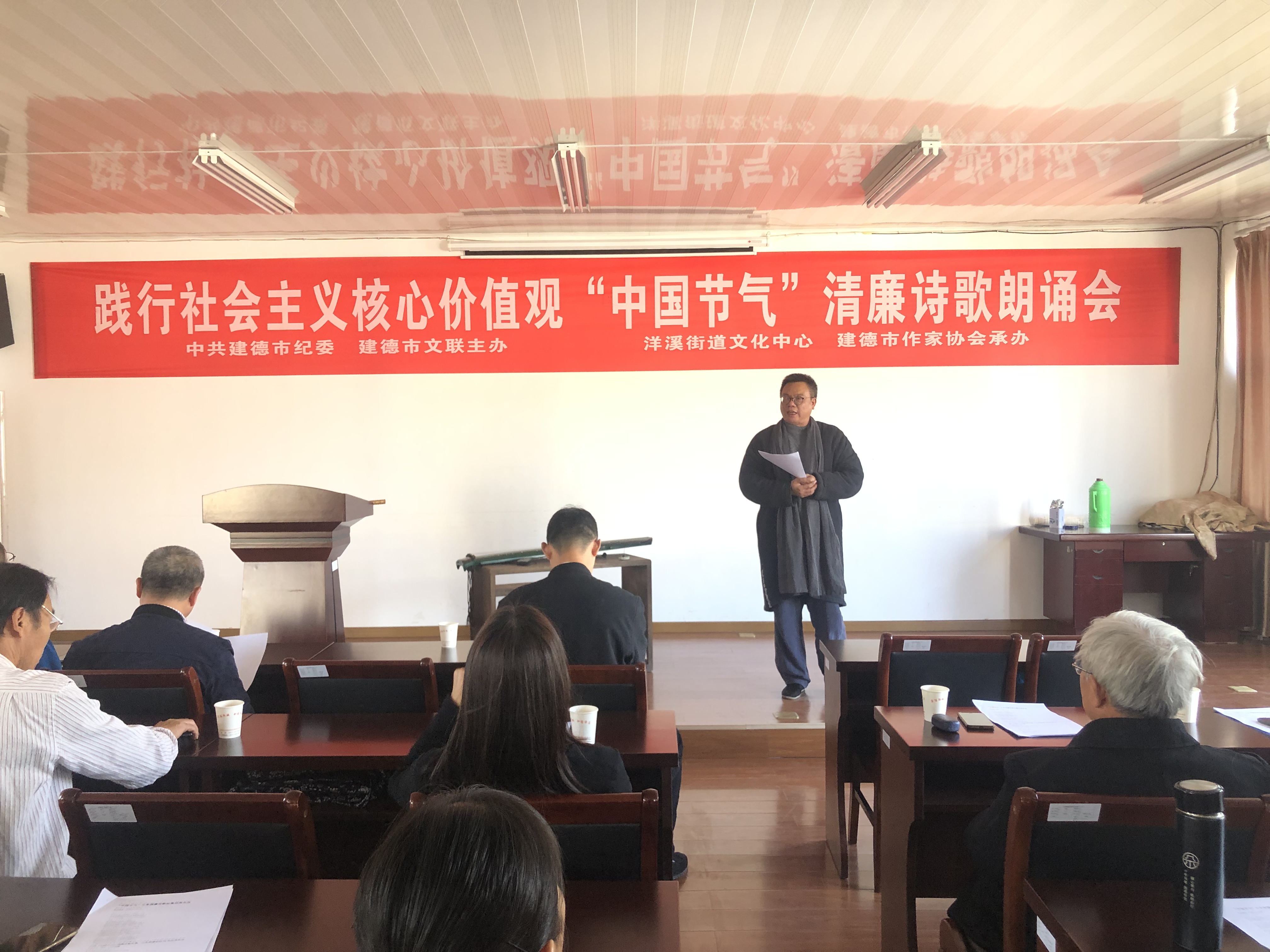 立冬是冬季的開(kāi)始,近日,由中共建德市紀(jì)委、建德市文聯(lián)主辦,建德市作家協(xié)會(huì)、洋溪街道綜合文化站承辦的“中國(guó)節(jié)氣、立冬”清廉詩(shī)歌朗誦會(huì)在洋溪街道文化中心舉行。在詩(shī)歌朗誦會(huì)上,唐山貞等人朗誦了全國(guó)各地10位詩(shī)人創(chuàng)作的清廉詩(shī)歌20余首,過(guò)承祁等人還激情展示了古琴、簫演奏,為此次詩(shī)歌會(huì)的舉辦營(yíng)造了傳統(tǒng)節(jié)氣的文化氛圍。
